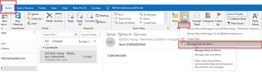B1. Trên thanh công cụ, chọn Home > Rules > Manage Rules & Alerts…