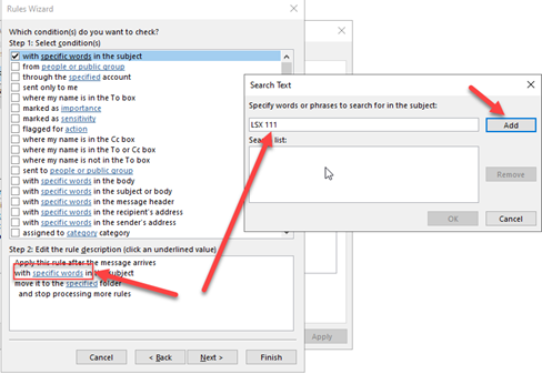 B4: Nhấn specific words, nhập vào hộp thoại như dưới đây, sau đó nhấn Add> OK