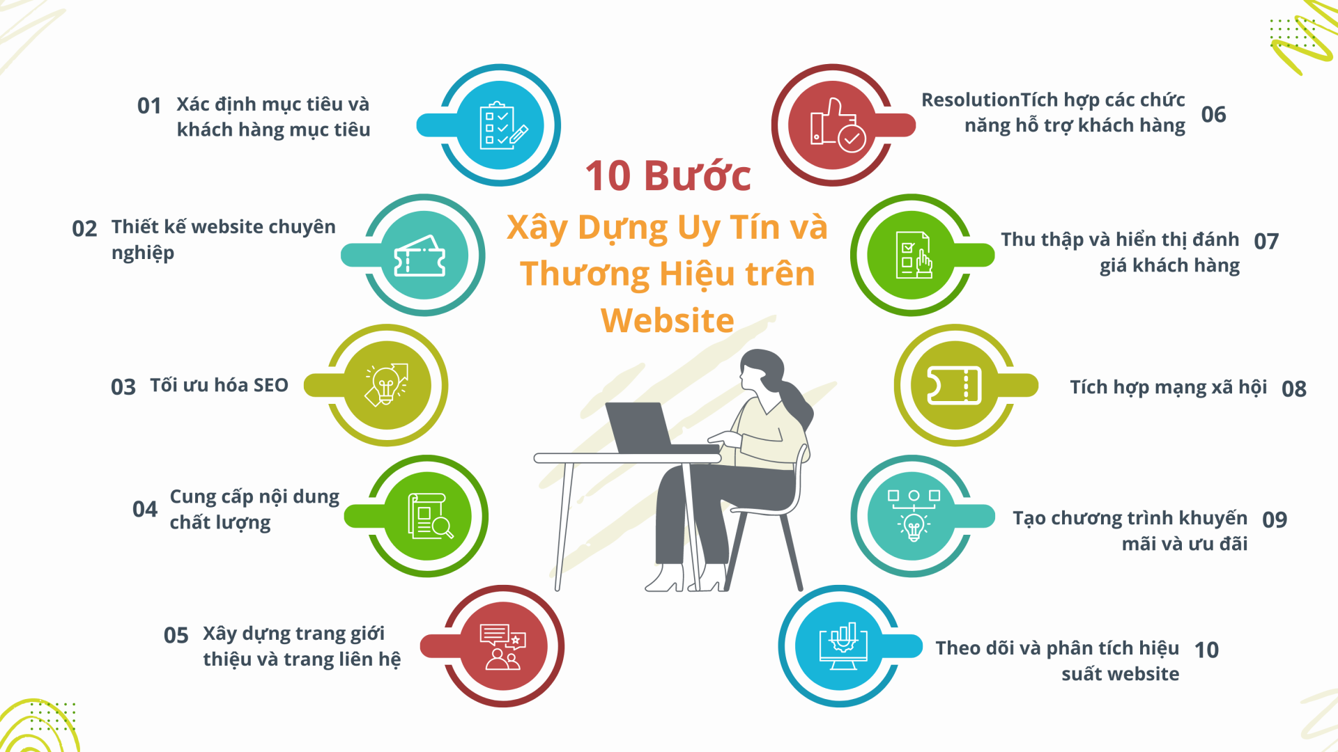 Quy trình 10 bước xây dựng uy tín và thương hiệu qua nền tảng website không chỉ giúp bạn thiết lập một hiện diện trực tuyến mạnh mẽ mà còn tăng cường sự tin tưởng của khách hàng đối với thương hiệu của bạn. Thực hiện một cách nhất quán và liên tục các bước này sẽ giúp doanh nghiệp của bạn phát triển bền vững và thành công trong môi trường kinh doanh ngày càng cạnh tranh. Bắt đầu từ việc xác định mục tiêu, thiết kế một website chuyên nghiệp, tối ưu hóa SEO, cung cấp nội dung chất lượng, và tương tác hiệu quả với khách hàng, bạn sẽ xây dựng được một thương hiệu uy tín và mạnh mẽ trên nền tảng trực tuyến.