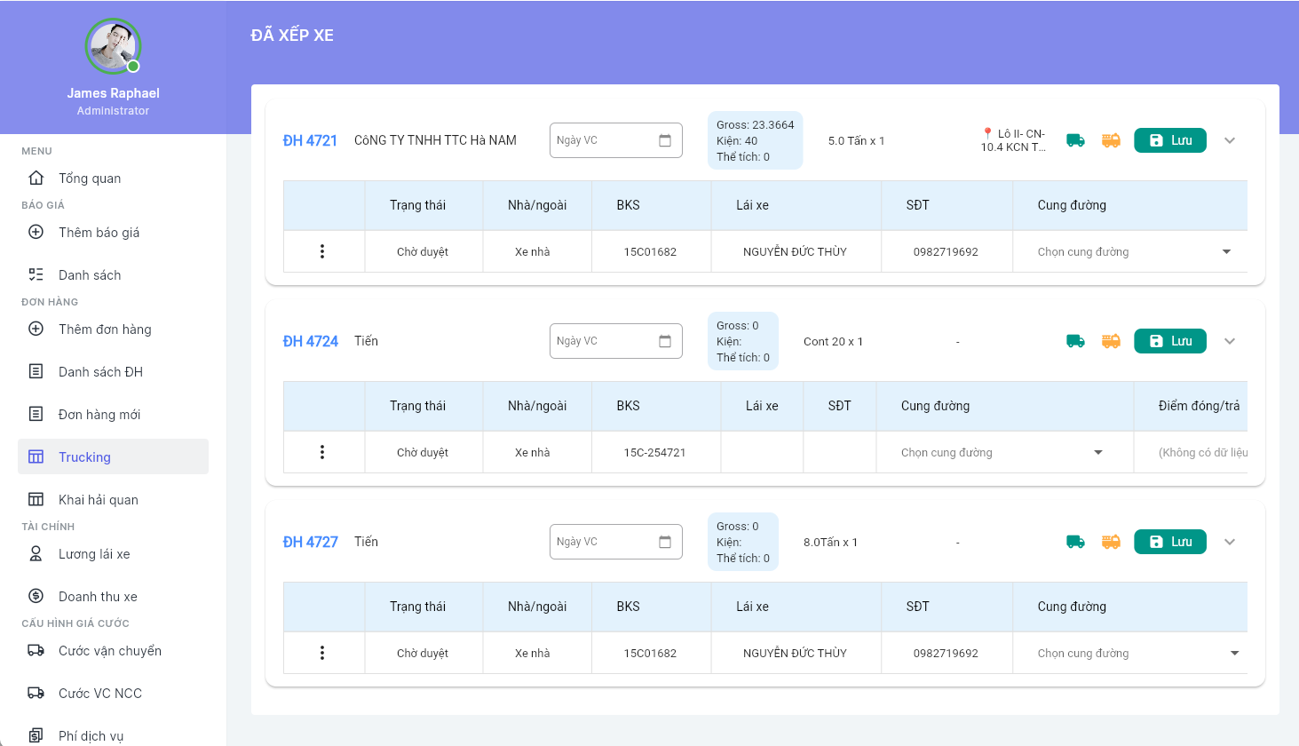 Điều này giúp điều phối chính xác, tối ưu xe và tránh trùng lịch.